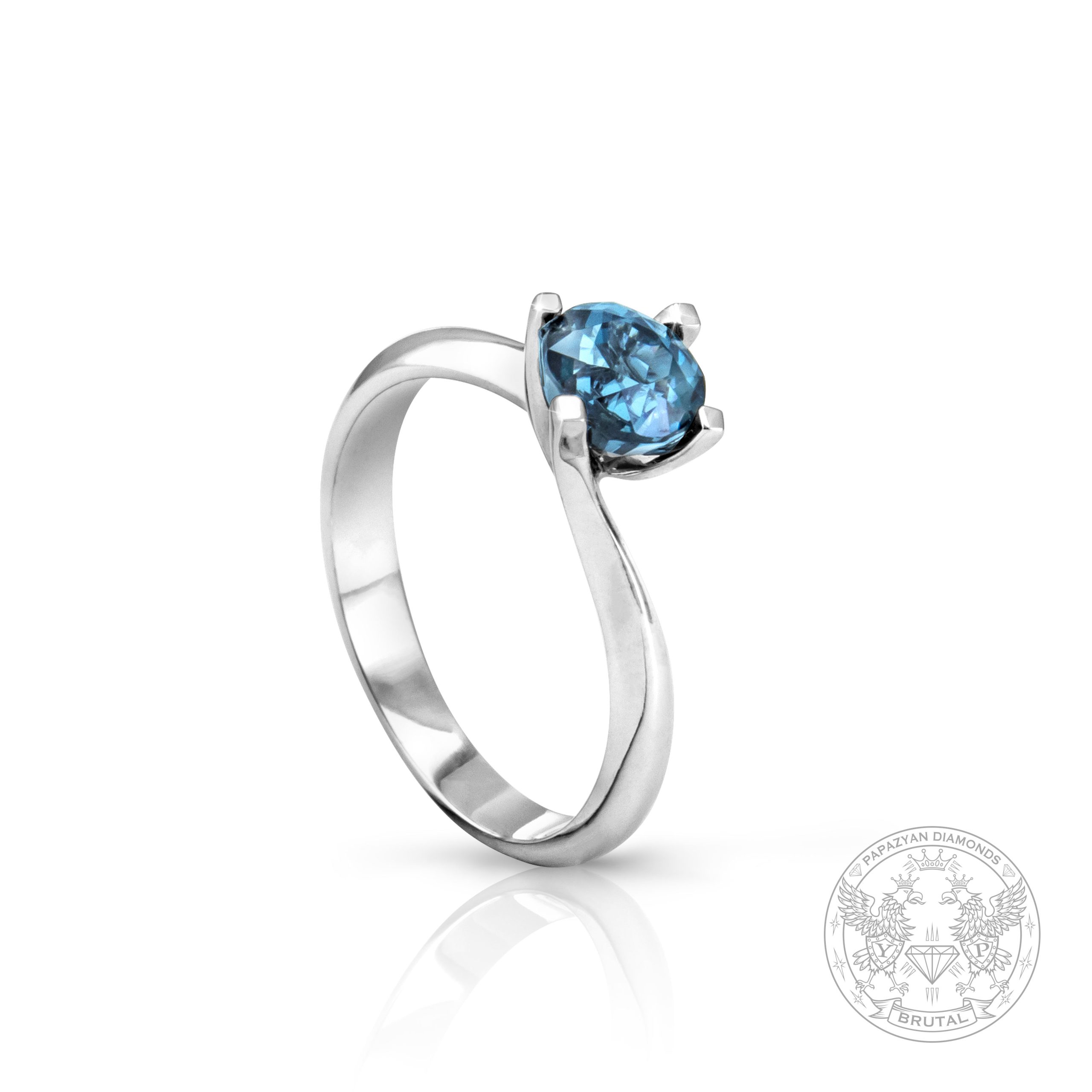 Годежен пръстен в бяло злато със син Шпинел 0.70