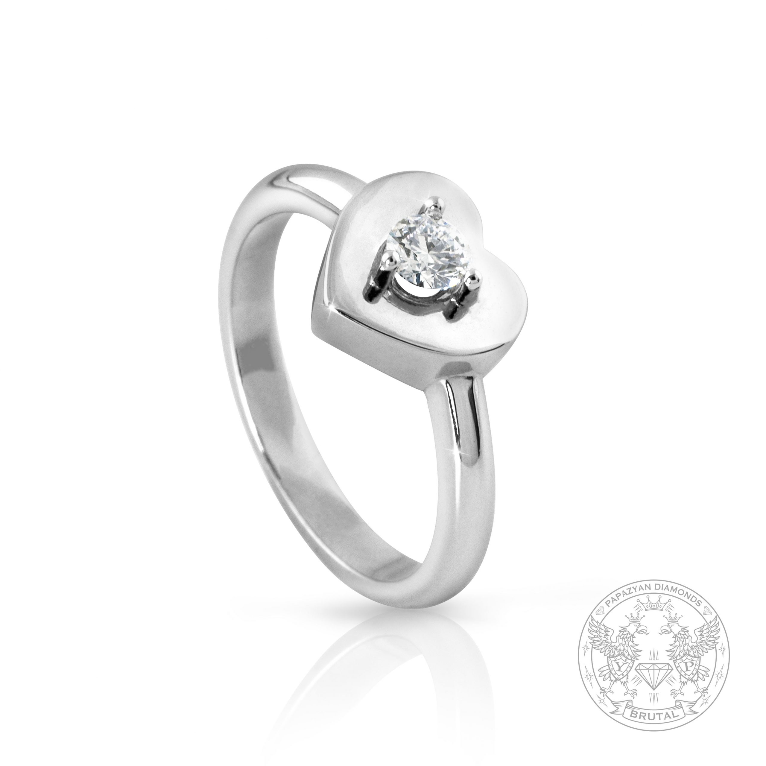 Класически дизайн годежен пръстен под формата на сърце с централен брилянт.