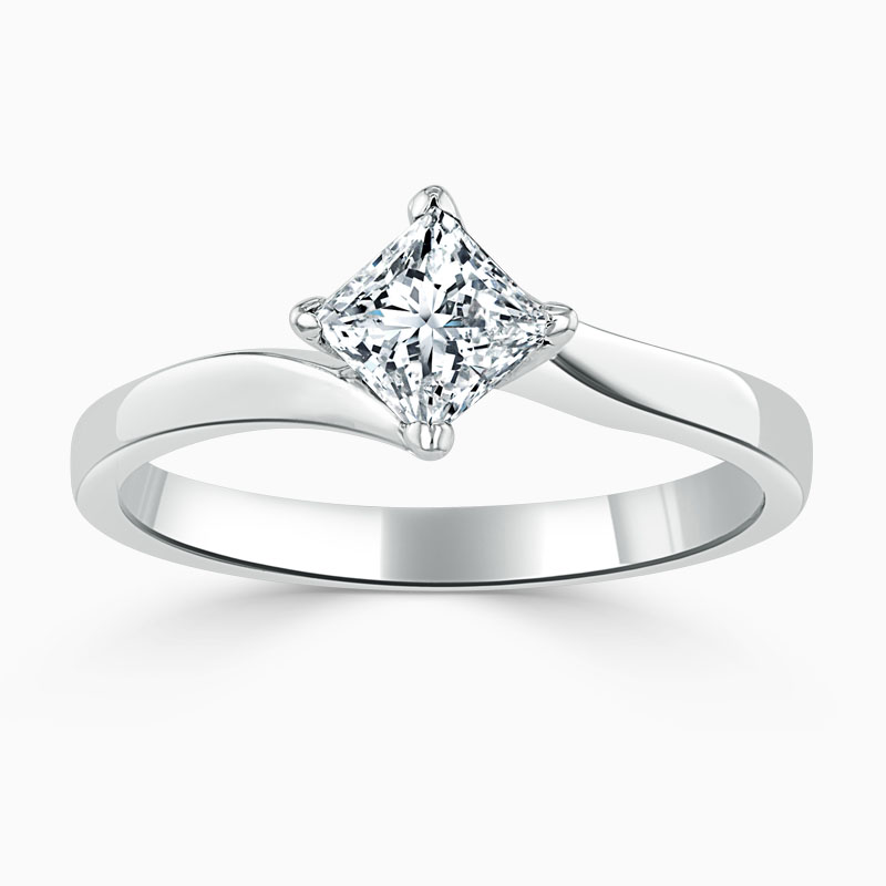 Невероятен годежен пръстен, изработен от 14К бяло злато с централно позициониран квадратен диамант Princess cut (0.50ct.)