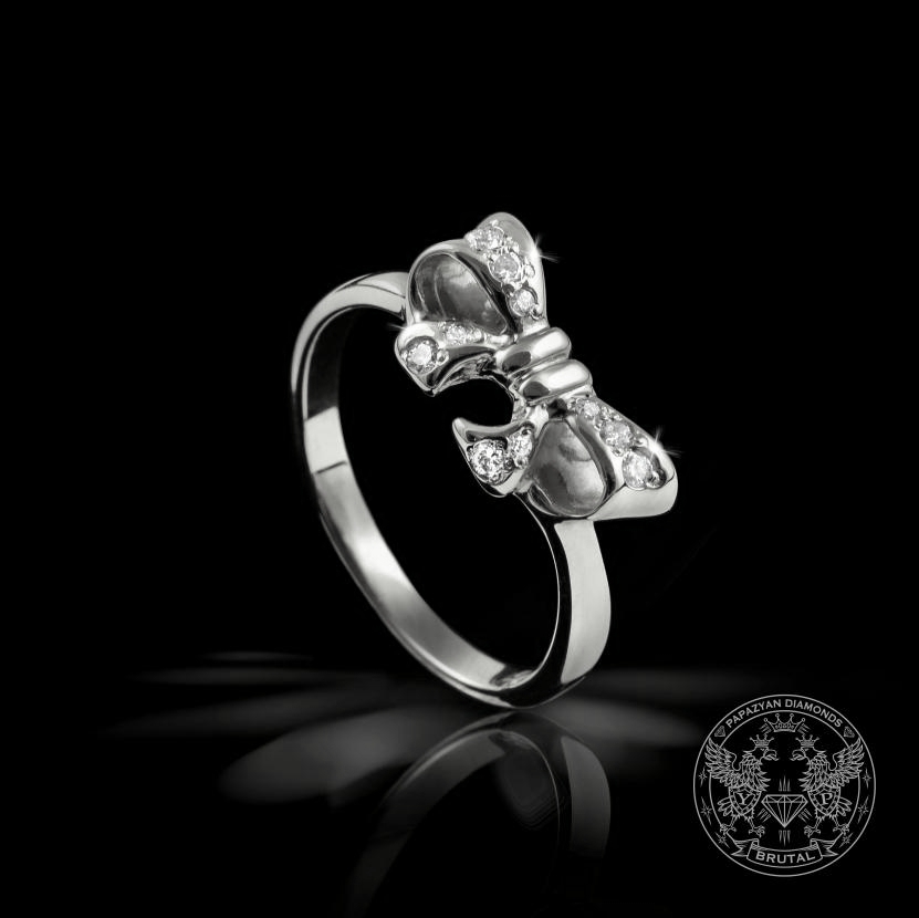 Годежен пръстен, тип панделка, с диаманти