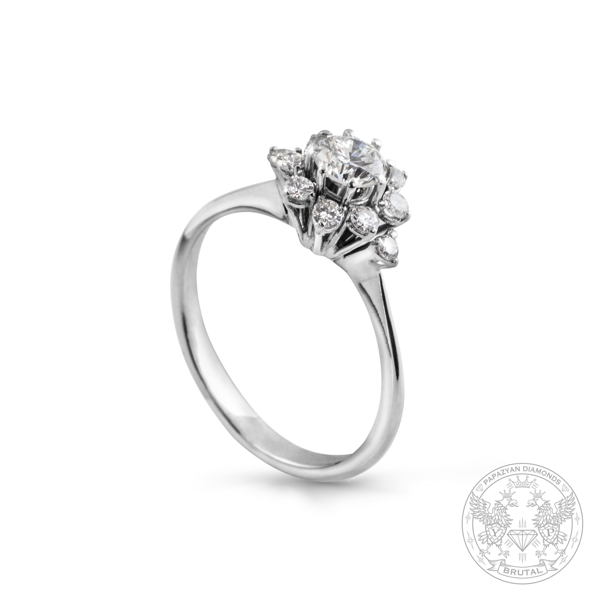 Изключителен дамски пръстен, иазработен от 18К бяло злато с инкрустирани бели висококачествени брилянти.