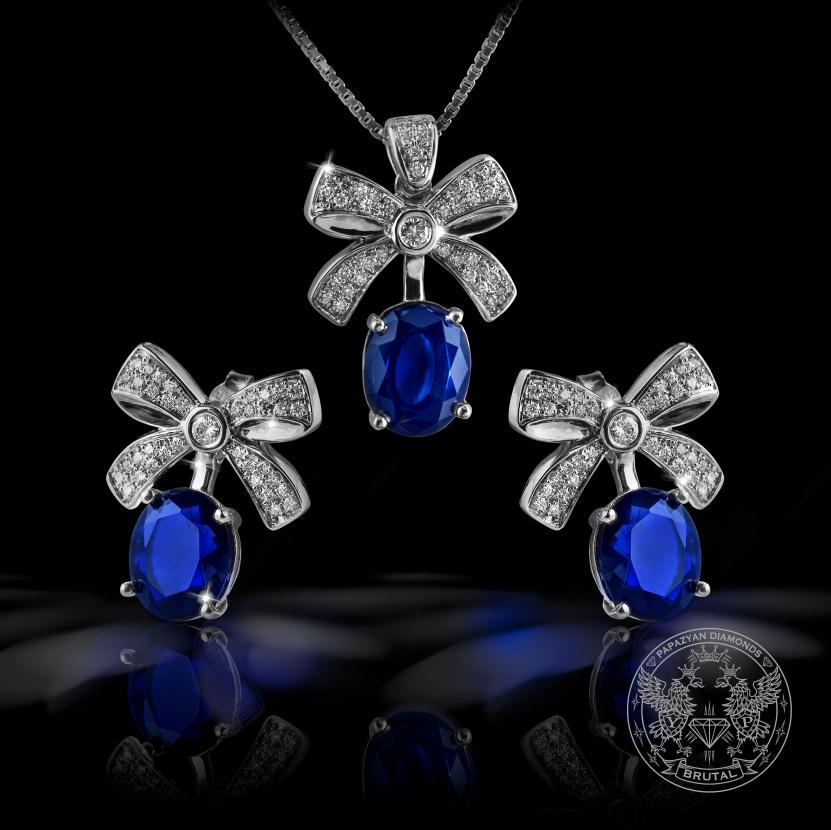 Комплект обeци и медальон с диаманти, иолит и турмалин BR183 (148)