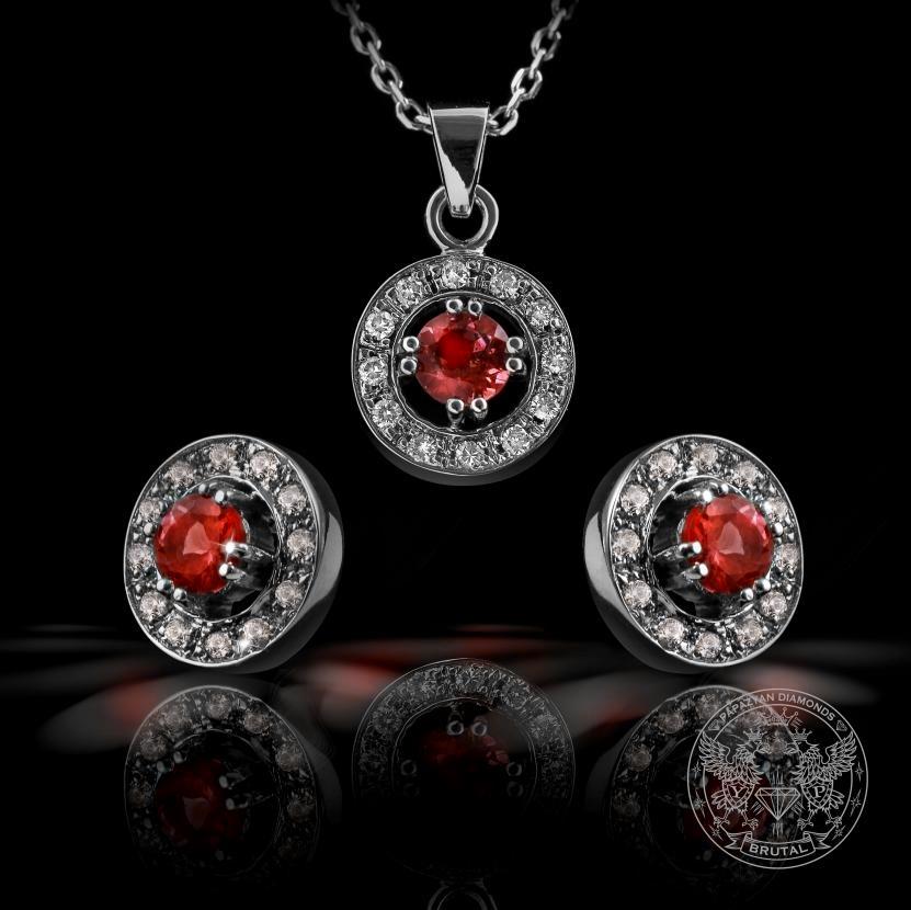 Комплект обeци и медальон с диаманти и червени сапфири BR197 (766)