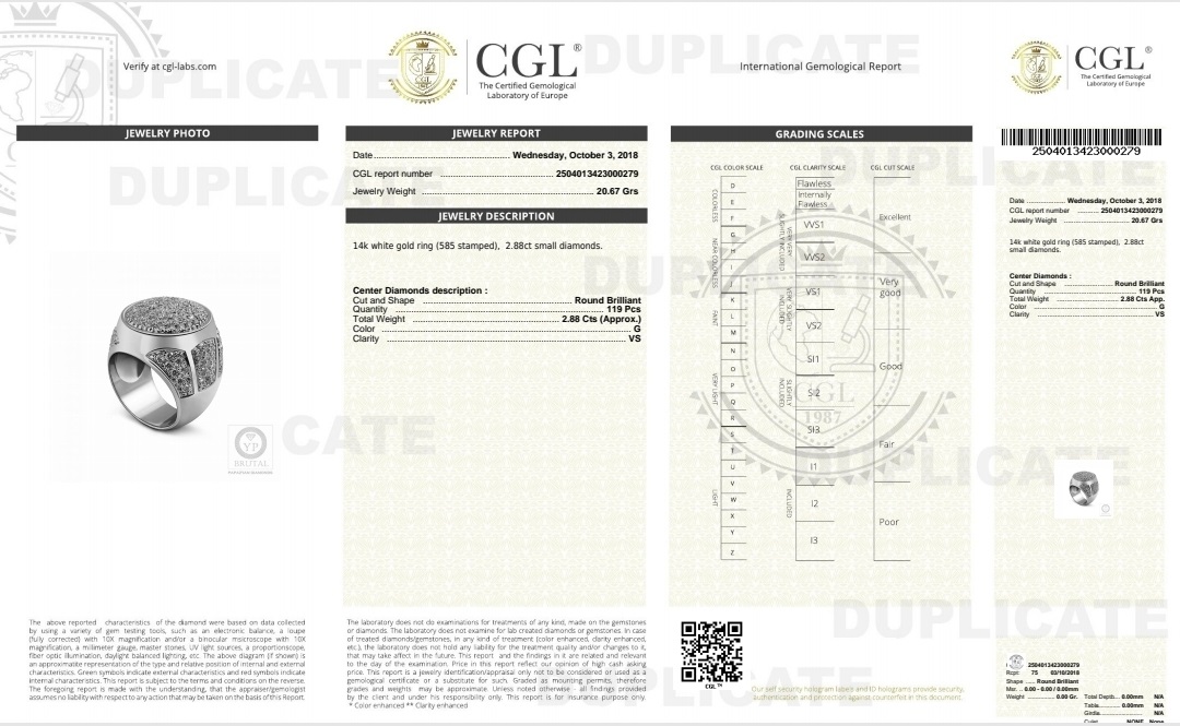 Мъжки YP – Уникален пръстен от бяло злато и 120 брилянти (3132)