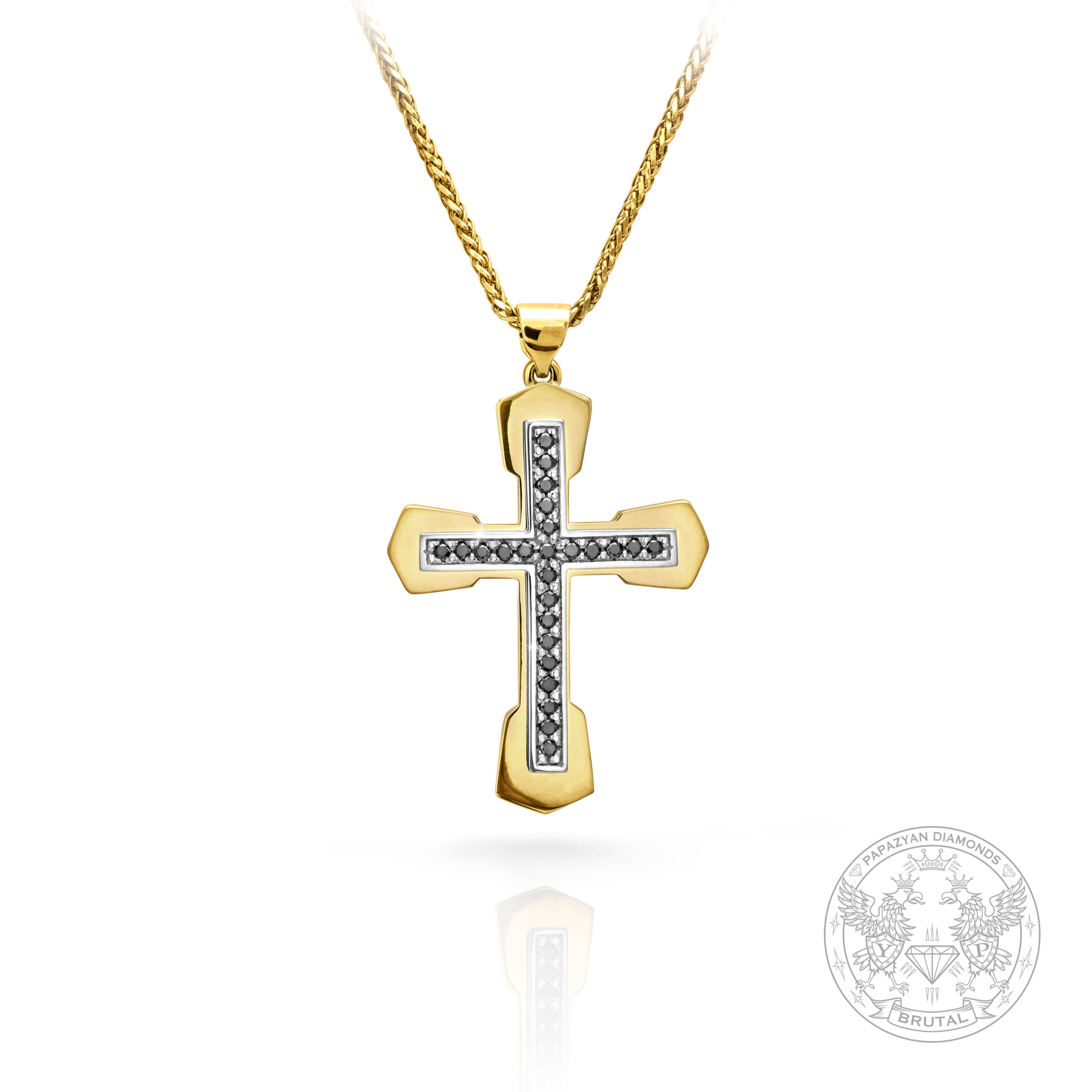Мъжки кръст в жълто и бяло злато с черни диманти
