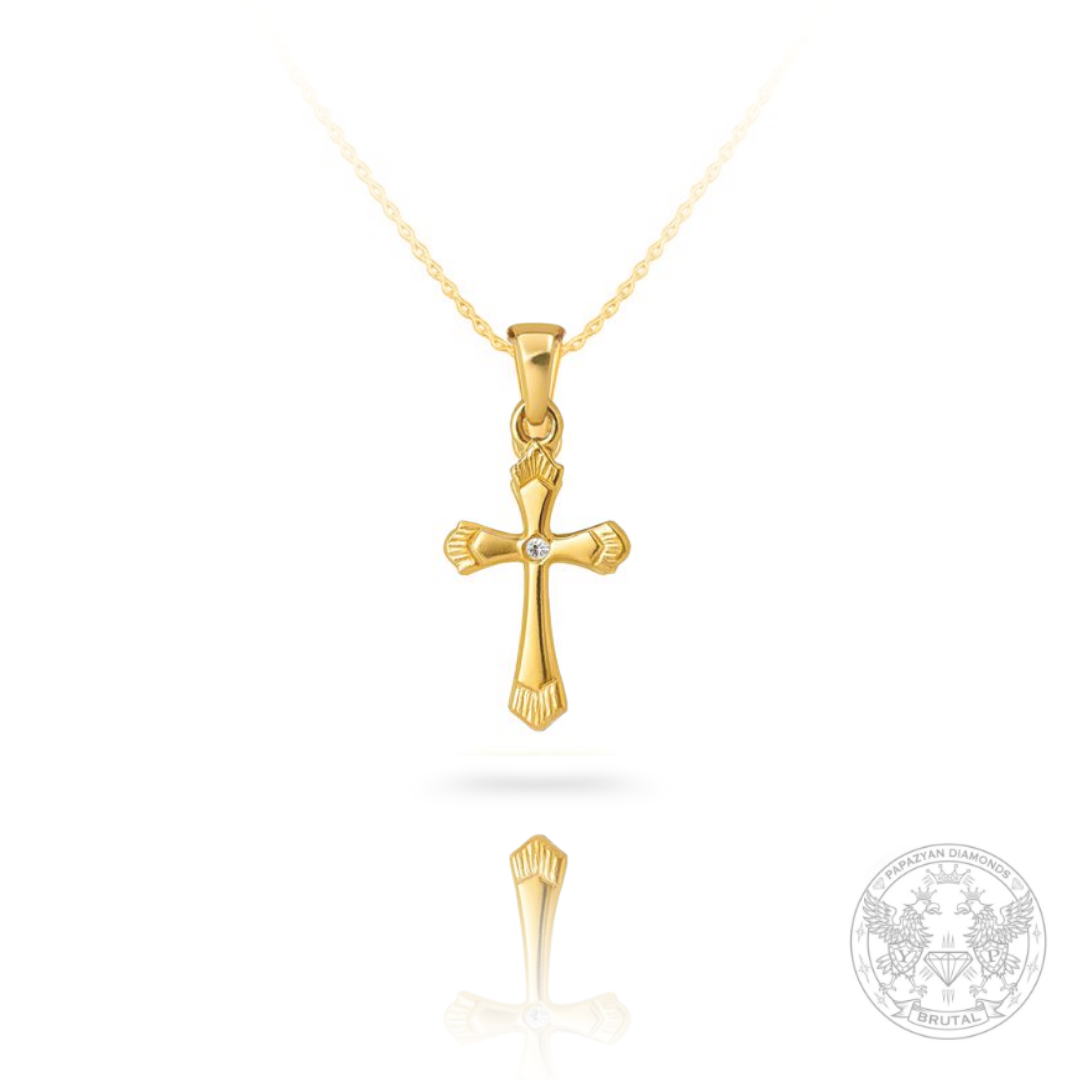 Нежно кръстче в жълто злато с брилянт BR2061