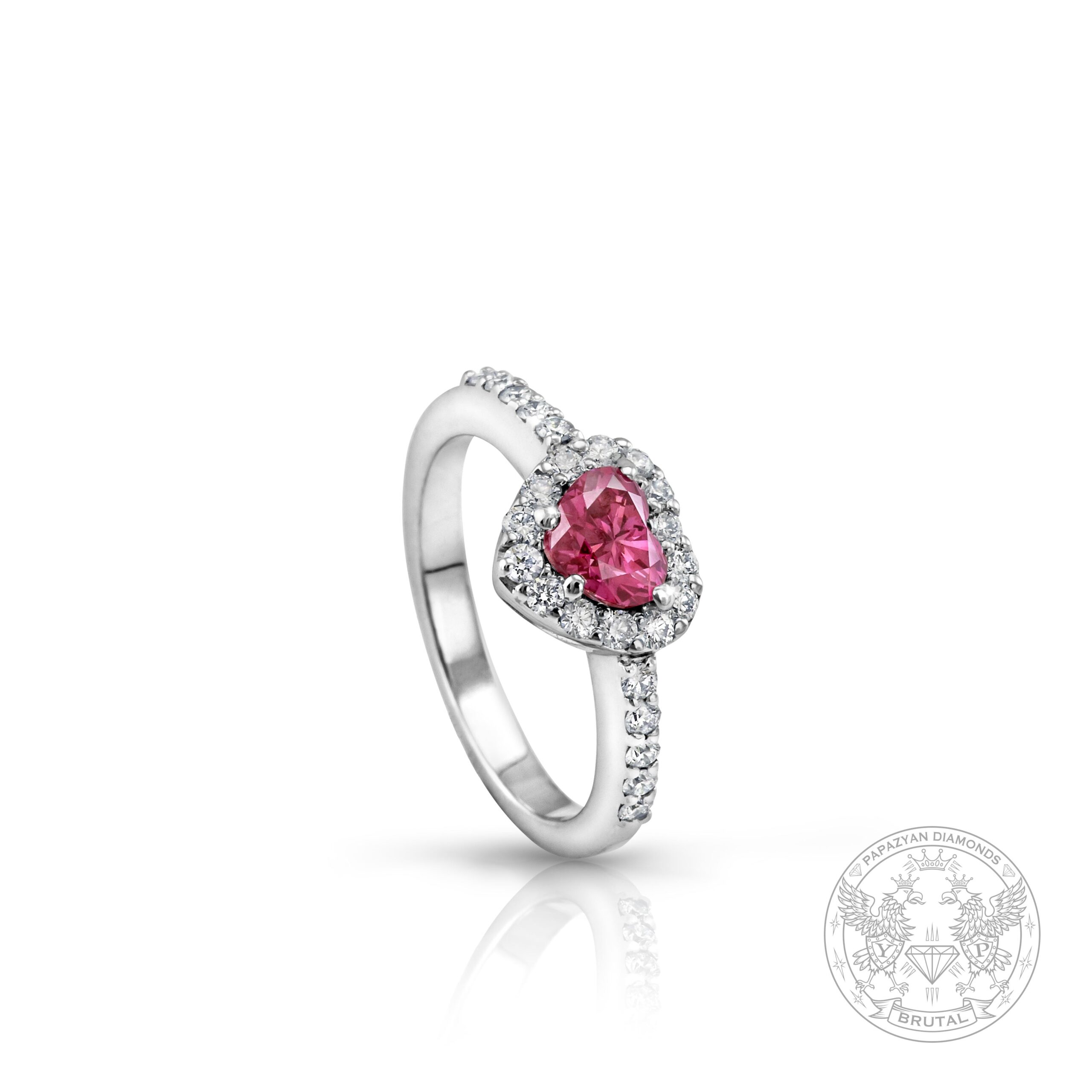 Пръстен, бяло злато с централен Розов Диамант във форма на сърце 0.49 ct. и странични Диаманти 0,30 ct. BR9572
