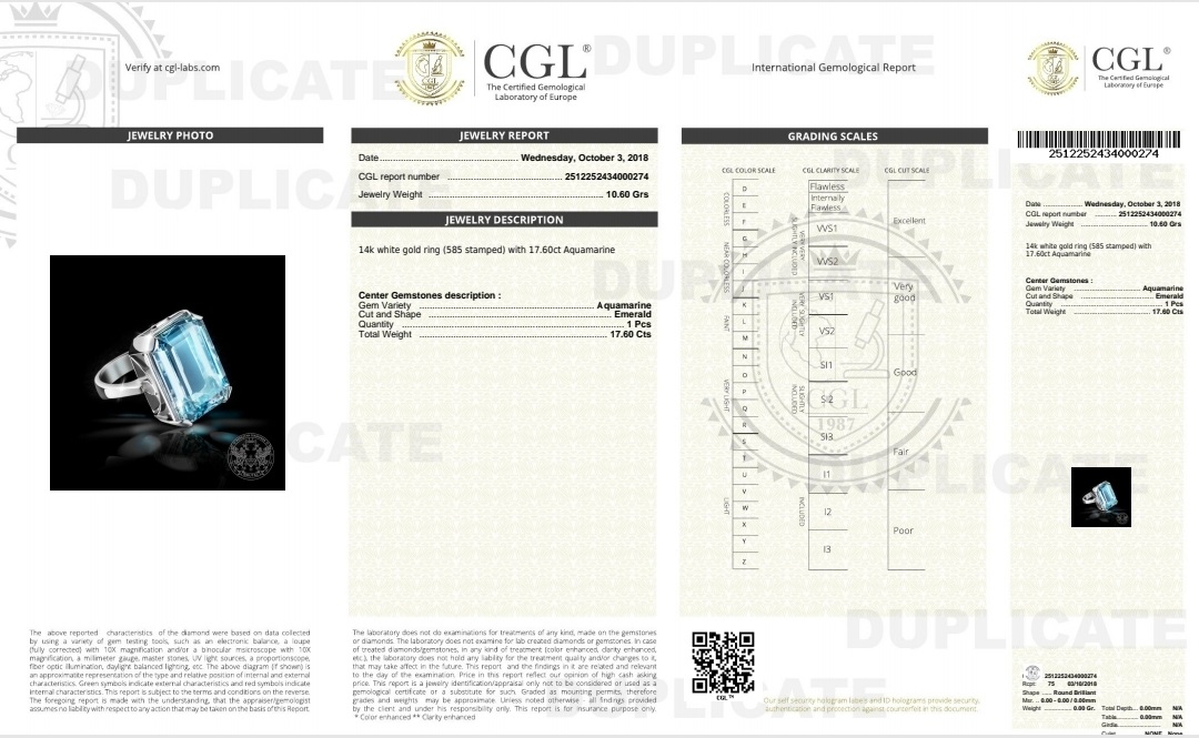 | Вид камък | Аквамарин |