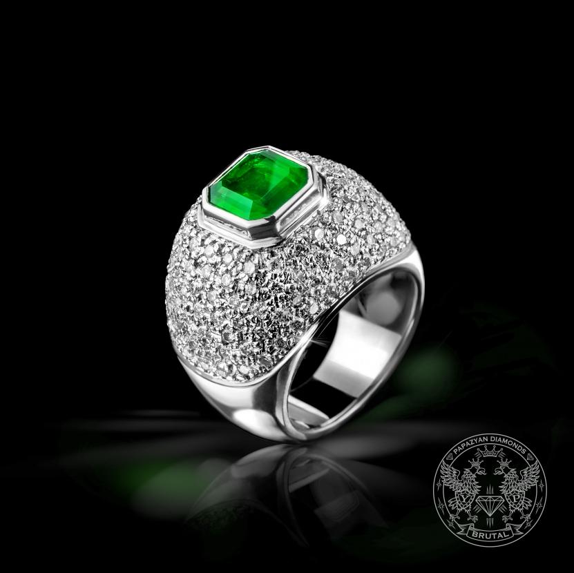 Златен пръстен с диаманти и зелен камък изумруд – Бутикови бижута BRUTAL