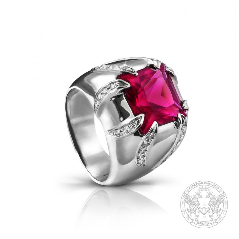 Пръстен с рубелит и диаманти – Колекция БРУТАЛ